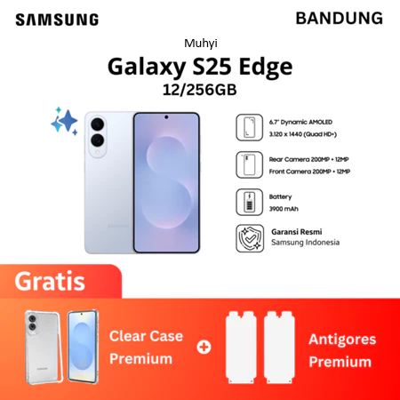 Samsung Galaxy S25 Edge hadir dengan desain elegan dan inovatif yang membuatnya tampil menonjol di kelas flagship. Cocok untuk Anda yang mencari smartphone Samsung premium original dengan performa tangguh dan tampilan stylish untuk gaya hidup modern. Detail spesifikasi sebagai berikut: